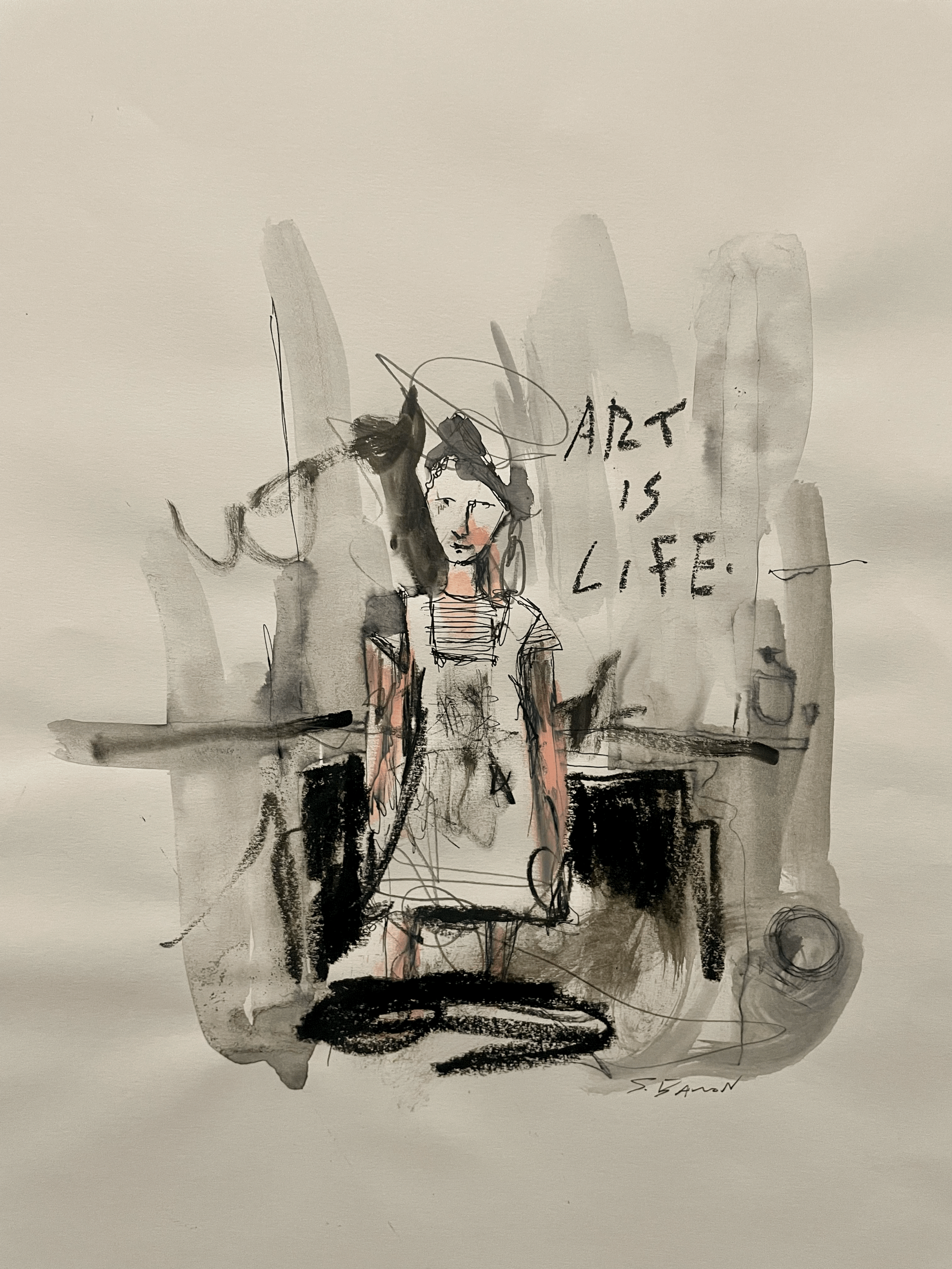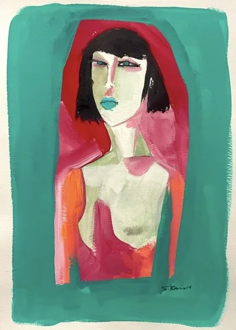 Stephanie Baron is a Vermont-based self-taught mixed media artist known for her abstract figurative depictions of women. Having grown up learning to be tough, Stephanie once kept her softer side hidden. Art became her way of saying yes to herself — of letting her inner world show. Each piece is an unfinished story, a figurative form that whispers of beauty, courage, and emotional truth. Her women are playful yet quiet, strong yet soft, inviting viewers to see themselves reflected in their curves, colors, and shapes. Every painting is, in her words, “a little love letter to the parts of us that want to be seen, but don’t always know how.”